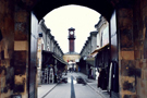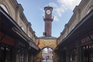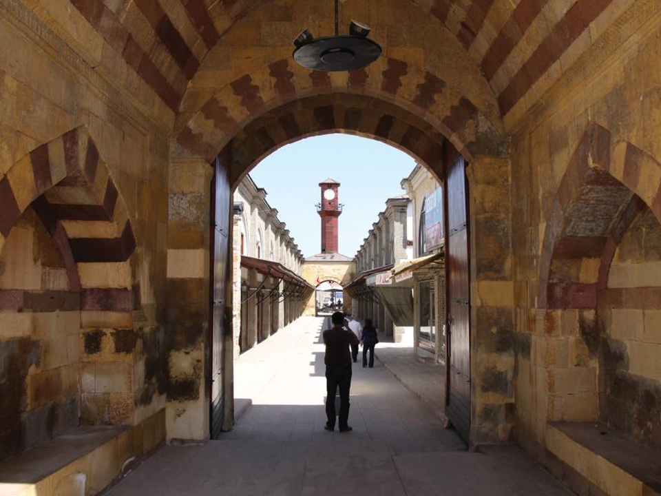 Arada uzun dikdörtgen iki yanına sıralanmış beşik tonoz örtülü dükkanlardan oluşmaktadır. Avluya bakan cepheler her bölümü oluşturan yüksek sivri kemerler ve bunların aralarındaki payandalarla süslüdür. Üst kısımda cephe boyunca payandaların çevresini de dolaşarak uzanan derin silmeler iç mekana ayrı bir görünüm ve hareket kazandırmıştır.