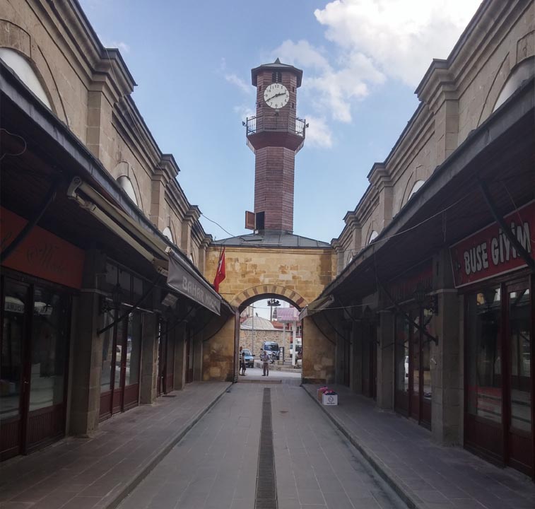 İlçe merkezinde, Köprülü Camii'nin güneyinde yer alır. Köprülü Mehmet Paşa tarafından 1660 yılında kendi adına camiinin külliyesi olarak yaptırılmıştır. Doğu-batı yönünde ince uzun dikdörtgen planlıdır. Dört kapılı yapının özellikle meydana bakan kapısı diğerlerine göre daha özenli olup üzerine 1900 yılında Yanyalı Mustafa Paşa’nın oğlu Ali Rıza Bey tarafından saat kulesi ilave edilmiştir.